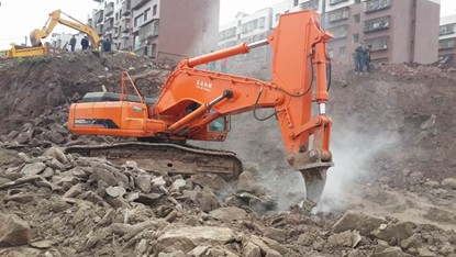 借助操作让挖机履带后部浮起,仅靠前部支撑进行挖掘,这种操作会产生极大的瞬间冲击力。当挖斗脱离岩石的瞬间,机体重心骤降,会对挖斗、配重、机架以及回转支承等关键部件造成硬性损伤,间接加重油缸的承载负担。